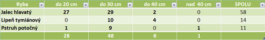 Podarilo sa nám označiť 83 kusov rýb prevažne jalec hlavatý, Pp a Li.
