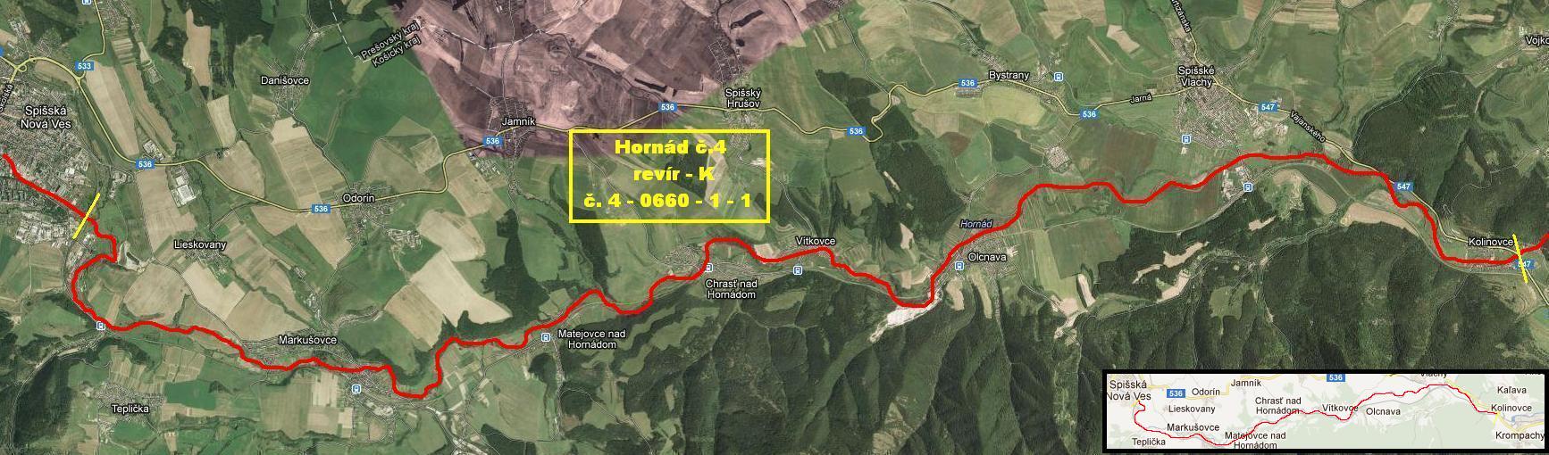 | POPIS: | Čiastkové povodie rieky Hornád od cestného mosta v obci Kolinovce po železničný most pod SNV. Revír zahrnutý vo Zväzovom povolení – K – RADY - SRZ |